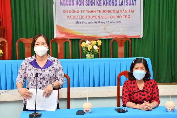 Nguồn vốn tín dụng do Công ty TNHH Thương mại Vận tải và Du lịch Xuyên Việt Oil tài trợ, được trao cho 200 thành viên của các xã Châu Hòa 100 thành viên, 1 tỷ đồng; Hưng Lễ 50 thành viên, 500 triệu đồng; Long Mỹ 39 thành viên, 390 triệu đồng; thị trấn Giồng Trôm 11 thành viên, 110 triệu đồng. Hạn mức vay từ 7 đến 10 triệu đồng, phương thức trả dần hàng tháng, thời hạn quay vòng 12 tháng, lãi suất 0%.