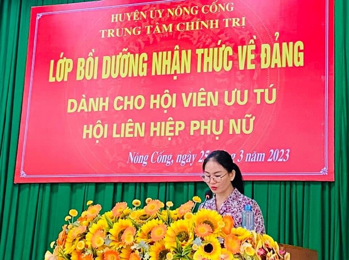 Hội LHPN huyện Nông Cống phối hợp với Trung tâm chính trị huyện tổ chức khai giảng lớp Nhận thức bồi dưỡng về Đảng cho 41 hội viên, phụ nữ ưu tú trên địa bàn. Qua đó giúp các học viên nắm được các vấn đề cơ bản, cốt lõi về quá trình hình thành xây dựng và phát triển của Đảng, đường lối cách mạng Việt Nam, nguyên tắc tổ chức, hoạt động của Đảng... Trên cơ sở đó, mỗi hội viên, phụ nữ xác định động cơ vào Đảng đúng đắn, tiếp tục phấn đấu, rèn luyện, tu dưỡng phẩm chất đạo đức, phấn đấu trở thành đảng viên Đảng cộng sản Việt Nam, góp phần xây dựng đất nước, địa phương và tổ chức Hội LHPN vững mạnh.