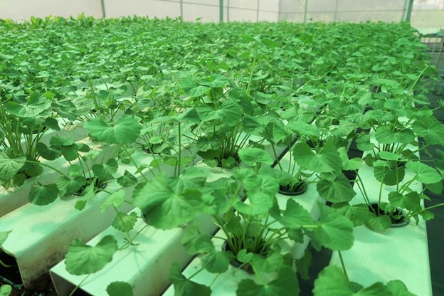 Khu trồng rau má thủy canh tại HTX nông nghiệp Tuấn Ngọc