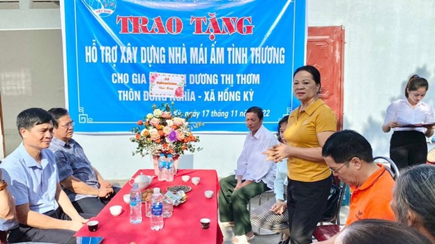 Bà Nguyễn Thị Loan phát biểu trong 1 hoạt động thiện nguyện ý nghĩa của Hội