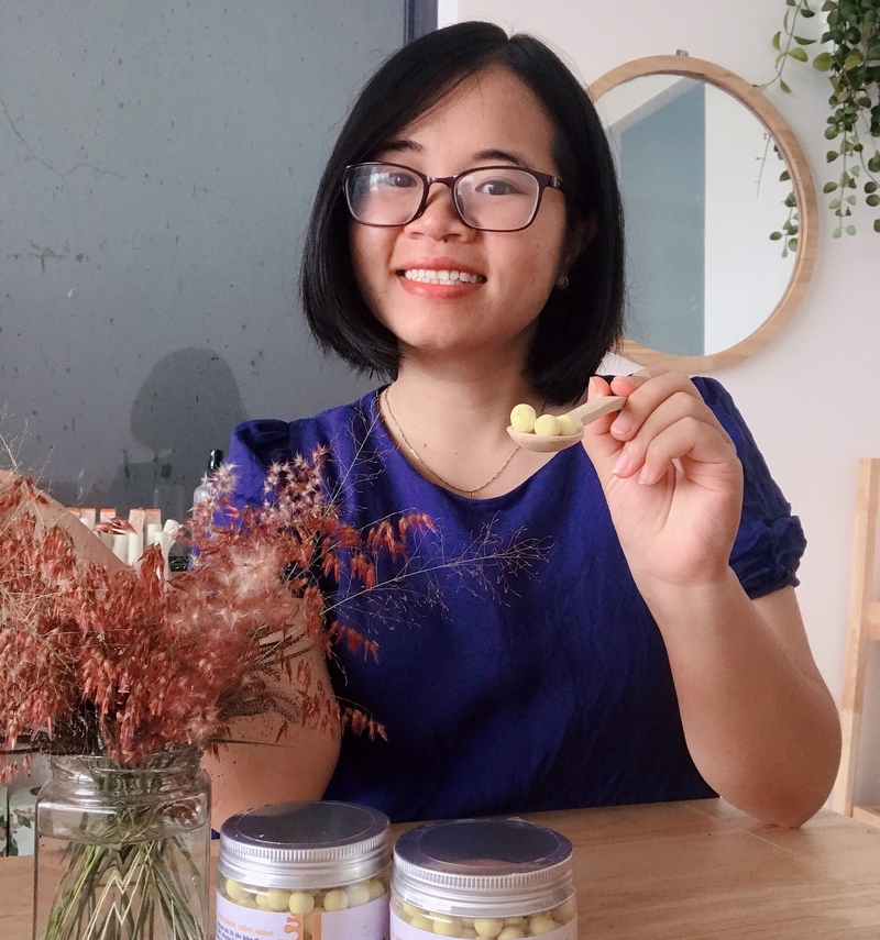 Với sản phẩm ban đầu là tinh bột nghệ, chị và các cộng sự của mình đã thành công trong việc giải quyết một phần nông sản không được thu mua cho bà con