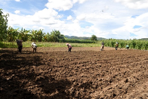 Chị em đang chuẩn bị đất để trồng rau tại trang trại Moutain Farmers
