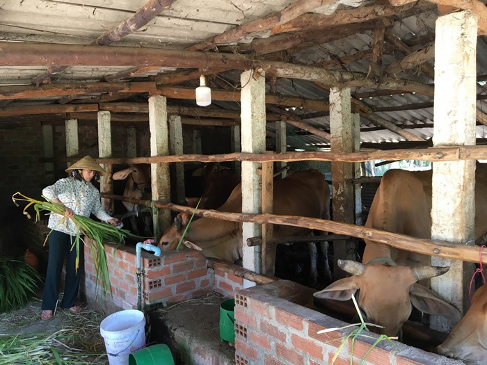 Ngoài ra, tận dụng nguồn phụ phẩm từ sản xuất nông nghiệp, chị Hạnh còn đầu tư nuôi bò sinh sản. Hiện đàn bò của gia đình chị có 8 con, trong đó có 6 con bò cái sinh sản. Nhờ lựa chọn con giống kỹ lưỡng và chăm sóc, tiêm phòng đầy đủ nên đàn bò của gia định chị sinh trưởng tốt và sinh sản đều, không những tạo nguồn phân chuồng dồi dào để bón cho cây trồng mà mỗi năm gia đình chị còn bán được khoảng 6 con bê con với tổng thu nhập gần 100 triệu đồng. Nhờ đó, tổng thu nhập từ trồng trọt và chăn nuôi của gia đình gần 200 triệu đồng/năm.