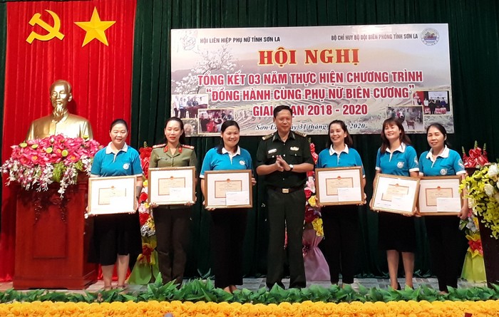 Đồn Biên phòng Mường Lạn và Hội LHPN xã Mường Lạn (Sốp Cộp) tặng quà hội viên, phụ nữ hoàn cảnh khó khăn trên địa bàn.(nguồn ảnh: http://www.baosonla.org.vn/) Báo cáo tại Hội nghị đánh giá, 3 năm qua, việc triển khai Chương trình “Đồng hành cùng phụ nữ biên cương” tại 17 xã biên giới của tỉnh đã nhận được sự đồng tình ủng hộ cao của các cấp, các ngành, đặc biệt là được TW Hội LHPN Việt Nam phân công giúp đỡ (Hội LHPN tỉnh Hòa Bình, Hội Nữ trí thức Việt Nam, Văn phòng Trung ương Hội, Báo Phụ nữ Việt Nam, Công ty Du lịch Hòa Bình); Hội LHPN các huyện, thành phố, đơn vị trực thuộc và các Đồn Biên phòng trong tỉnh thông qua các hoạt động hỗ trợ thiết thực, hiệu quả.