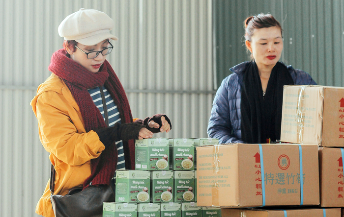 Food blogger Phan Anh Esheep (trái) có dịp tìm hiểu sâu hơn về sản phẩm măng với sự đồng hành của Phó chủ nhiệm HTX Hà Thị Huế