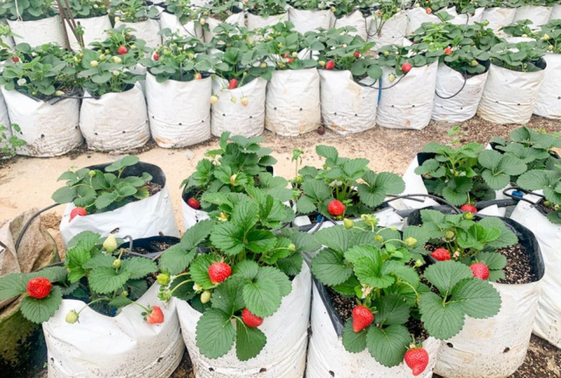 Khu vườn được trồng bằng phương pháp giá thể trong nhà kính theo công nghệ hiện đại, không sử dụng các loại thuốc, chất hóa học, nên quả dâu có chất lượng tốt, an toàn cho người dùng.