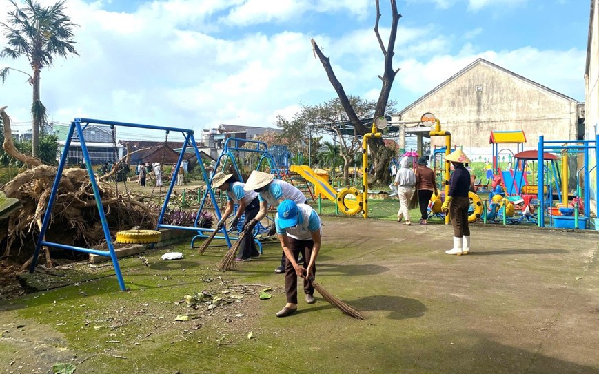 Khắc phục hậu quả sau bão, Hội LHPN các xã, phường ở Gia Lai phối kết hợp với các đơn vị trên địa bàn chung tay giúp người dân thu hoạch lúa, hoa màu; dọn dẹp nhà cửa, vệ sinh môi trường sớm ổn định cuộc sống. -