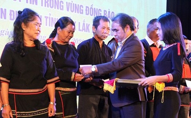 Ban Dân tộc tỉnh Đắk Lắk trao quà của người có uy tín trên địa bàn tỉnh - Ảnh: Ban Dân tộc tỉnh Đắk Lắk