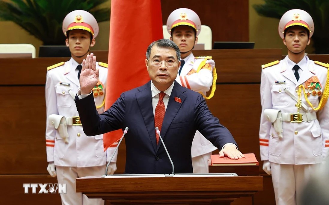 "Dưới cờ đỏ sao vàng thiêng liêng của Tổ quốc, trước Quốc hội và đồng bào, cử tri, tôi, Thủ tướng Chính phủ nước Cộng hòa xã hội chủ nghĩa Việt Nam xin tuyên thệ: Tuyệt đối trung thành với Tổ quốc, với nhân dân, với Hiến pháp nước Cộng hòa xã hội chủ nghĩa Việt Nam, nỗ lực phấn đấu, hoàn thành tốt nhiệm vụ được Đảng, Nhà nước và nhân dân giao phó", Thủ tướng Chính phủ Lê Minh Hưng tuyên thệ.