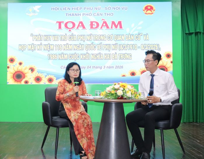 Phát biểu ôn lại truyền thống vẻ vang của phụ nữ Việt Nam, Thành ủy viên, Phó Chủ tịch Ủy ban MTTQVN thành phố, Chủ tịch Hội LHPN thành phố Nguyễn Thị Thuỳ Linh chia sẻ: “Kỷ niệm Ngày Quốc tế Phụ nữ 8/3 và cuộc khởi nghĩa Hai Bà Trưng không chỉ là dịp ôn lại truyền thống vẻ vang mà còn là động lực để chúng ta tiếp tục hành động vì sự tiến bộ của phụ nữ và bình đẳng giới. Với niềm tin sâu sắc vào truyền thống tốt đẹp và sức mạnh đoàn kết, tôi tin tưởng rằng phụ nữ thành phố Cần Thơ sẽ tiếp tục phát huy vai trò, khẳng định vị thế, đóng góp xứng đáng vào sự nghiệp xây dựng và phát triển thành phố trong giai đoạn mới. Và buổi tọa đàm hho6m nay là nội dung hết sức có ý nghĩa trong thực hiện mục tiêu bình đẳng giới góp phần thể hiện quyền làm chủ của phụ nữ”.