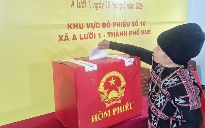 Cử tri xã A Lưới 1, thành phố Huế tham gia bỏ phiếu. (Ảnh: Mai Trang/TTXVN) Ngày 18/3, tại trụ sở Ủy ban Nhân dân thành phố Huế, Ủy ban bầu cử thành phố Huế tổ chức Hội nghị công bố kết quả bầu cử và danh sách người trúng cử đại biểu Hội đồng Nhân dân thành phố Huế khóa IX, nhiệm kỳ 2026-2031.