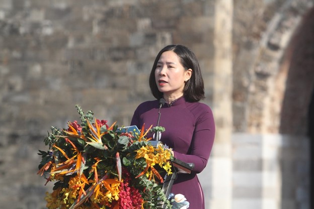 Bà Lê Kim Anh, Chủ tịch Hội LHPN thành phố Hà Nội, phát biểu khai mạc sự kiện