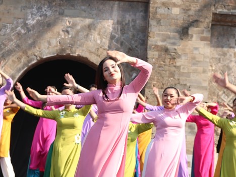 Sáng 5/10, chương trình đồng diễn dân vũ và Carnaval áo dài "Phụ nữ Thủ đô hội nhập và phát triển" với chủ đề "Duyên dáng Áo dài Hà Nội" đã diễn ra tại Hoàng Thành Thăng Long (Hà Nội).