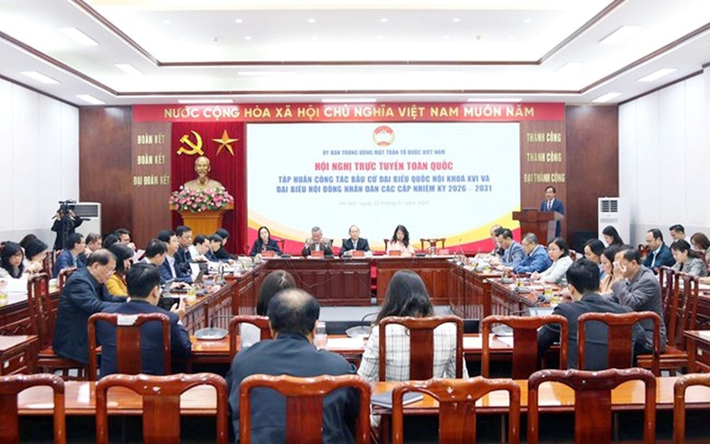 Ngày 23/11, tại Hà Nội, Ủy ban Trung ương MTTQ Việt Nam tổ chức Hội nghị trực tiếp kết hợp trực tuyến tập huấn công tác bầu cử đại biểu Quốc hội khóa XVI và đại biểu Hội đồng nhân dân các cấp nhiệm kỳ 2026-2031