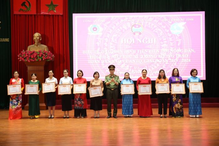 Dịp này, Giám đốc Công an tỉnh Bắc Giang đã tặng Giấy khen cho 9 tập thể Hội LHPN các cấp, 11 cá nhân phụ nữ điển hình tiên tiến có thành tích xuất sắc trong thực hiện Phong trào Toàn dân bảo vệ an ninh Tổ quốc, giai đoạn 2019-2024.