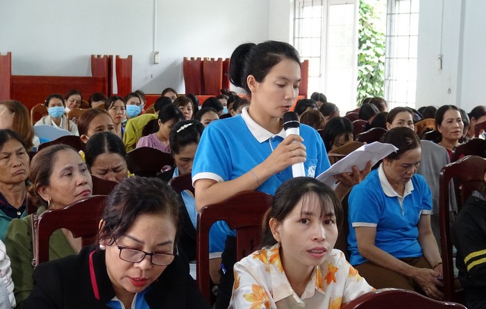 Với tinh thần dân chủ, thẳng thắn, chị em tham gia hội nghị đã đặt nhiều câu hỏi, ý kiến xoay quanh 03 nhóm vấn đề liên quan đến phụ nữ và trẻ em. Trong đó, nhóm vấn đề về kinh tế với các câu hỏi về hỗ trợ phụ nữ nâng cao quyền năng kinh tế, hỗ trợ phụ nữ khởi nghiệp, khởi sự kinh doanh; học nghề và giới thiệu việc làm; vay vốn phát triển kinh tế, chuyển giao tiến bộ KHKT trong chăn nuôi, sản xuất; hỗ trợ phương tiện sinh kế, thoát nghèo theo tiêu chí đa chiều. Nhóm vấn đề liên quan đến công tác Hội gồm các câu hỏi về phát triển hội viên, các mô hình thu hút hội viên phụ nữ tham gia tổ chức Hội, đổi mới trong điều hành sinh hoạt chi hội, phát huy quyền làm chủ của hội viên trong sinh hoạt Hội, bỗi dưỡng nâng cao kỹ năng cho Chi hội trưởng phụ nữ. Nhóm các vấn đề xã hội có liên quan đến trẻ em như: Bạo lực, xâm hại trẻ em, đuối nước, bảo vệ trẻ em gái trước vấn đề tảo hôn, hôn nhân cận huyết thống, nạn tự tử, chăm sóc sức khỏe phụ nữ và trẻ em, đặc biệt là phụ nữ và trẻ em dân tộc thiểu số; công tác đảm bảo an toàn thực phẩm; hỗ trợ hội viên phụ nữ phục hồi sau đại dịch Covid-19,...