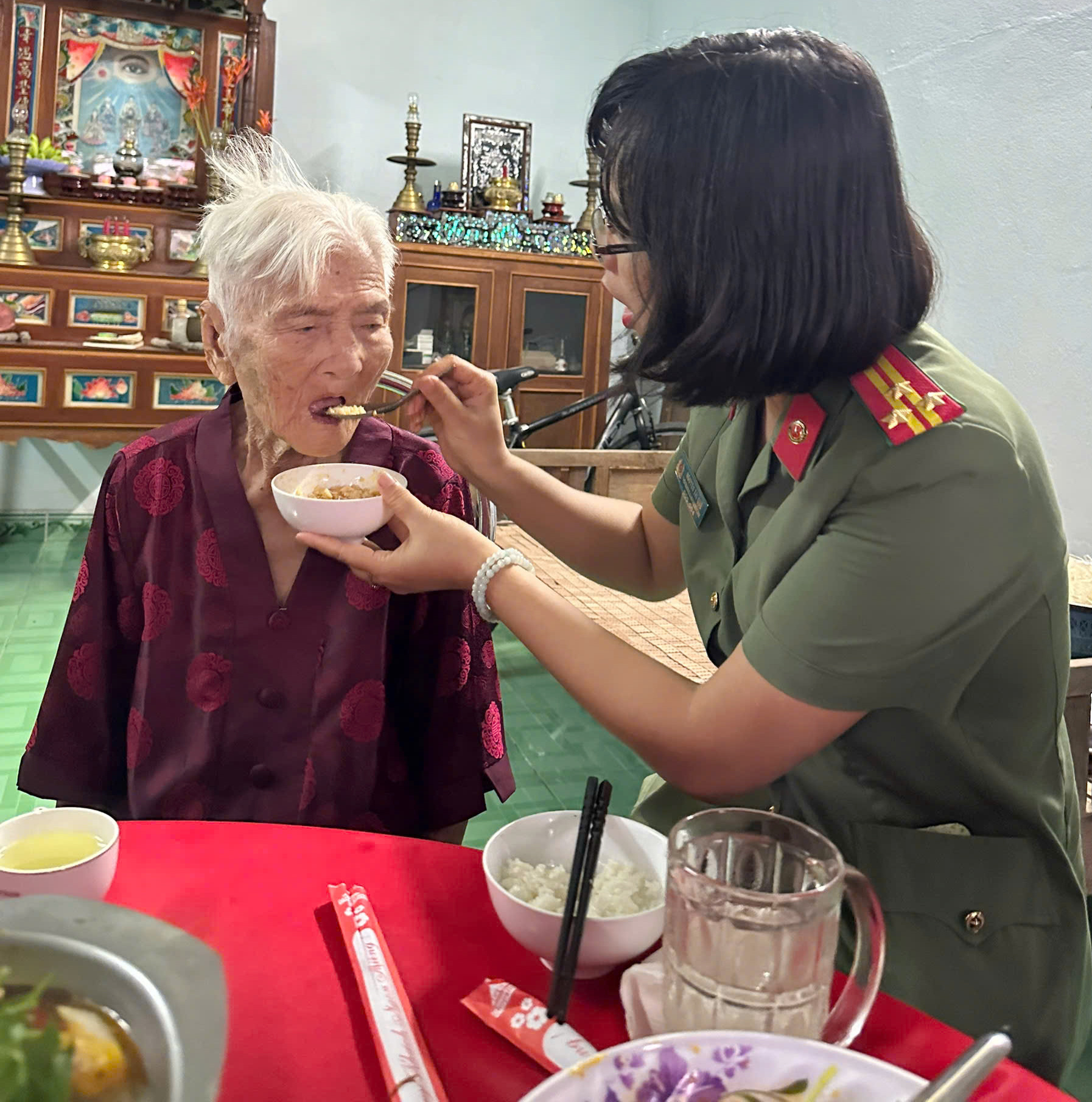 Được tự tay bón miếng cơm, động viên và chúc Mẹ Việt Nam Anh hùng giữ sức khỏe, đó là niềm hạnh phúc của mỗi thành viên trong đoàn công tác Phụ nữ Công an nhân dân