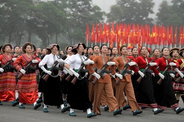Đội hình diễu binh, diễu hành kỷ niệm 70 năm chiến thắng Điện Biên Phủ có sự tham gia của các khối nữ tiêu biểu.