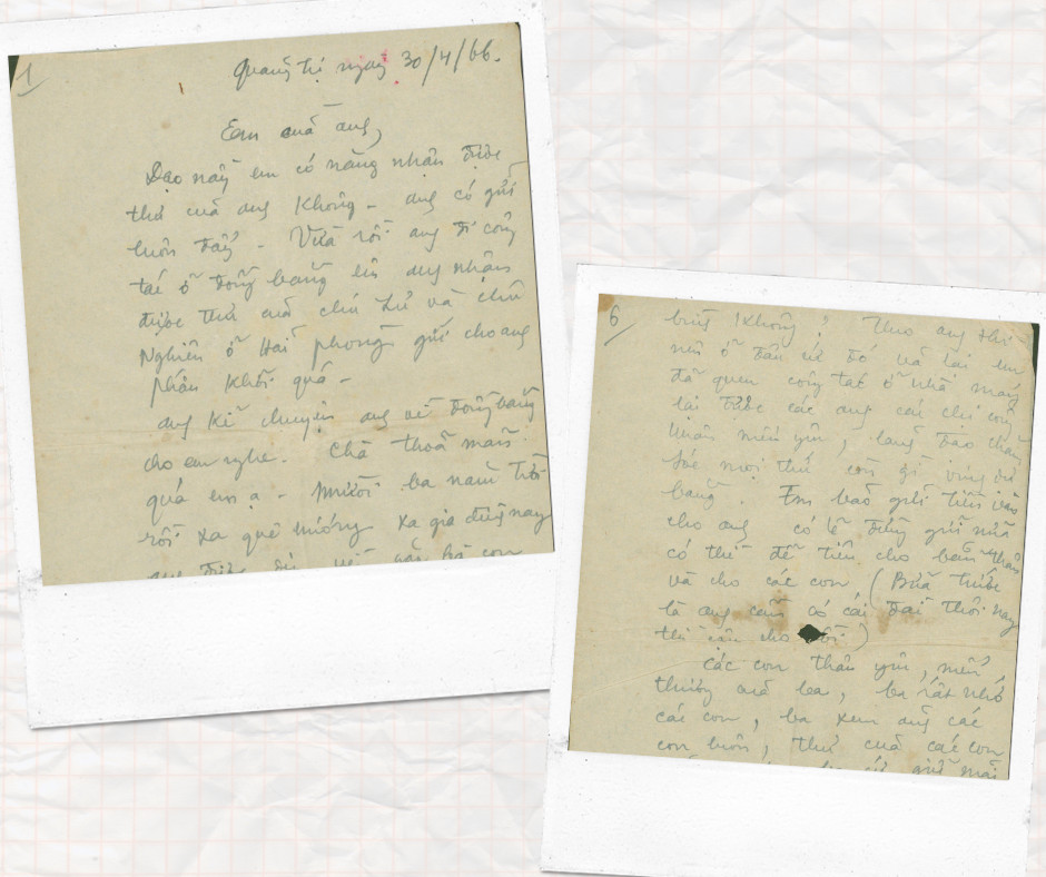 Thư của ông Trần Trọng Hoán biên chế tại Đại đội 7, Trung đoàn 95 thuộc chiến khu Ba Làng, Quảng Trị gửi cho vợ là bà Phan Thị Miên