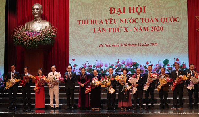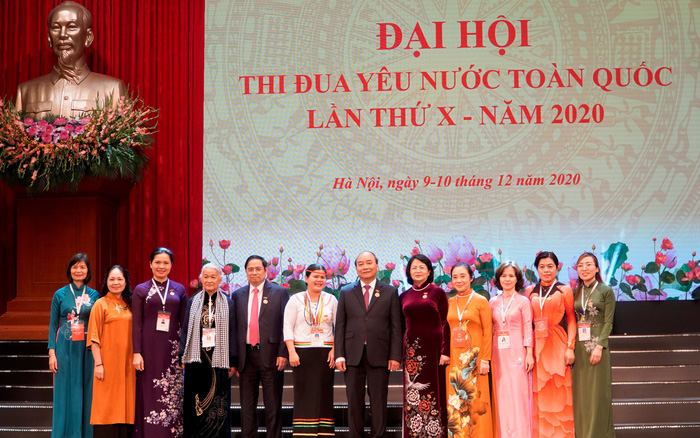 Thủ tướng Chính phủ Nguyễn Xuân Phúc, Ủy viên Bộ Chính trị, Bí thư Trung ương Đảng, Trưởng ban Tổ chức Trung ương Phạm Minh Chính, Phó Chủ tịch nước Đặng Thị Ngọc Thịnh chụp ảnh lưu niệm cùng đoàn đại biểu Hội LHPN Việt Nam dự Đại hội thi đua yêu nước lần thứ X. Ảnh: Trường Hùng Các phong trào thi đua phát triển mạnh mẽ, sâu rộng, tạo động lực quan trọng góp phần thực hiện thắng lợi nhiệm vụ chính trị, phát triển kinh tế-xã hội của cả nước, của các cấp, các ngành và từng cơ quan, tổ chức, đơn vị. Những thành tựu đó là nền tảng để chúng ta tiếp tục vững bước trên con đường đổi mới toàn diện, đồng bộ, hiệu quả hơn vì một nước Việt Nam dân giầu, nước mạnh, dân chủ, công bằng, văn minh.