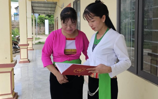 Chị Hà Thị Hoài (thứ 2 từ trái sang) - Chủ tịch Hội LHPN xã Lai Đồng cùng các thành viên của Tổ truyền thông cộng đồng Khu Phắt