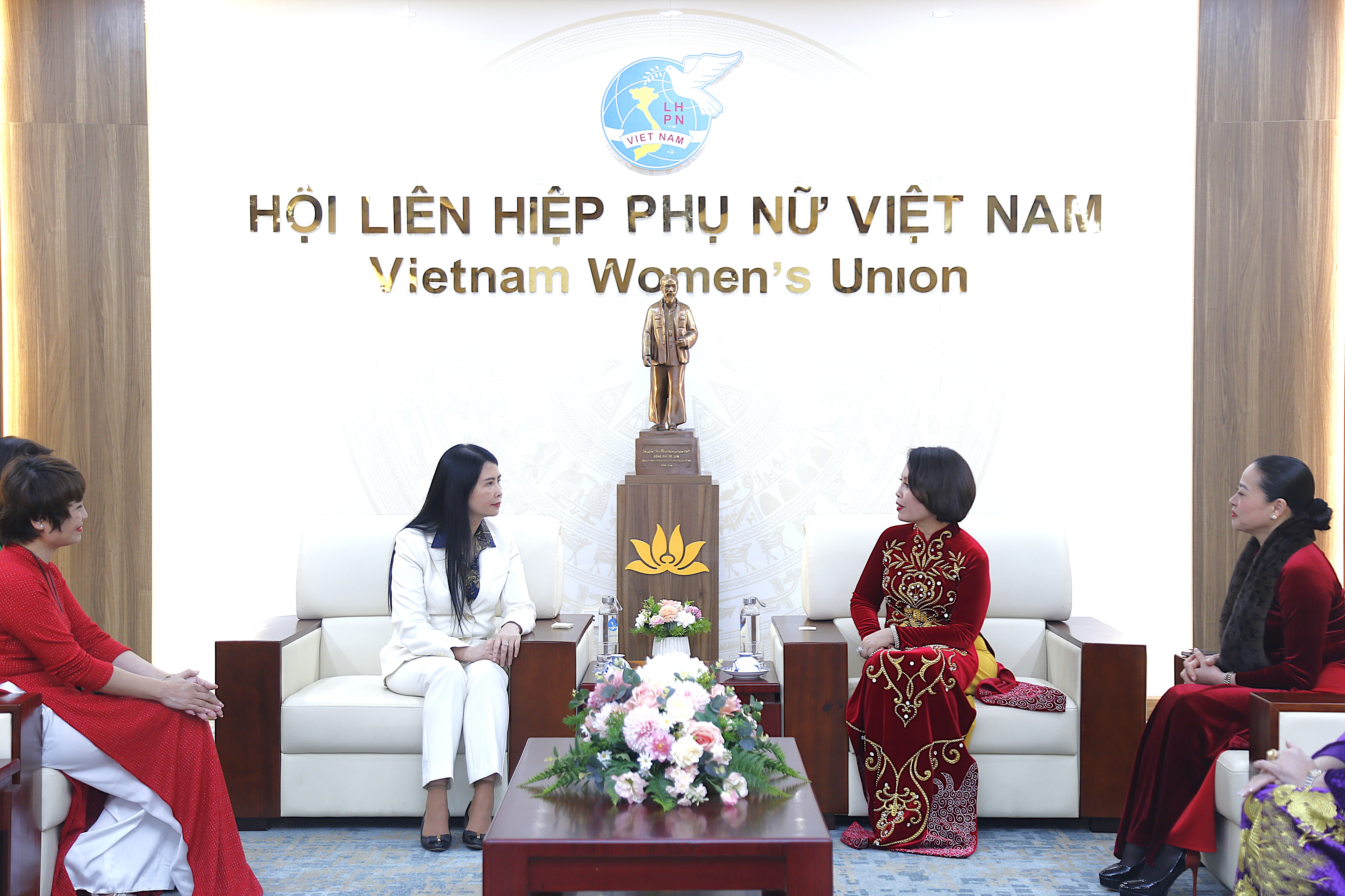 Phó Chủ tịch Thường trực Hội LHPN Việt Nam Trần Lan Phương (trái ảnh) tiếp đoàn đại diện CLB Nữ lãnh đạo Ruby tại Việt Nam