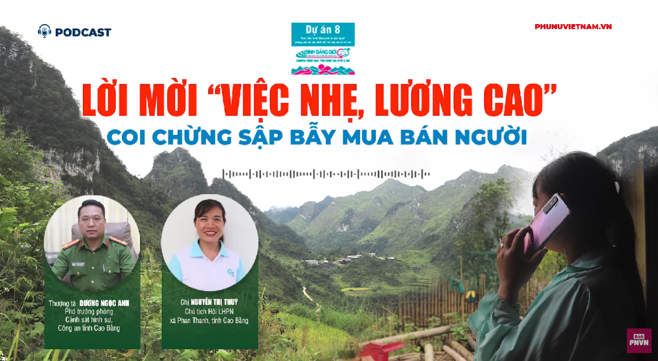 Trước thực trạng nhức nhối này, Báo Phụ nữ Việt Nam thực hiện chương trình Podcast với chủ đề “Lời mời việc nhẹ, lương cao - Coi chừng sập bẫy mua bán người”. Chương trình không chỉ vạch trần những thủ đoạn lừa đảo ngày càng tinh vi của tội phạm, đặc biệt là trên không gian mạng, mà còn đóng vai trò như một cuốn cẩm nang trang bị kỹ năng phòng vệ thiết yếu. Qua đó, giúp bà con nâng cao cảnh giác, chủ động bảo vệ an toàn cho bản thân, gia đình và cộng đồng.