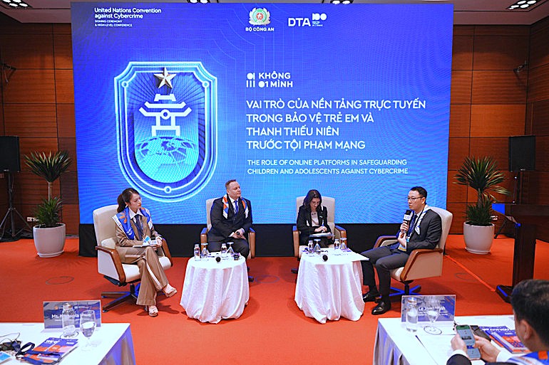 Tọa đàm "Vai trò của nền tảng trực tuyến trong bảo vệ trẻ em và thanh thiếu niên trước tội phạm mạng" Tham dự tọa đàm có đại diện các cơ quan quản lý, tổ chức quốc tế, nền tảng công nghệ và cộng đồng sáng tạo.