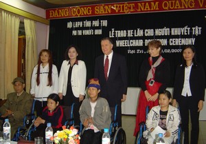 In the morning of February 8th 2007, with the support of the Central Vietnam Women’s Union, Phu Tho Provincial Women’s Union organized a ceremony to hand over 1.000 wheelchairs donated by the Latter-day Saint Charities (LDSC) to the local recipients. -