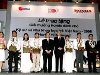 Ten students from four universities in Vietnam have received the Honda Yes Award, a prize for talented engineers and young scientists conferred by the Honda Foundation and Honda Vietnam Co. -