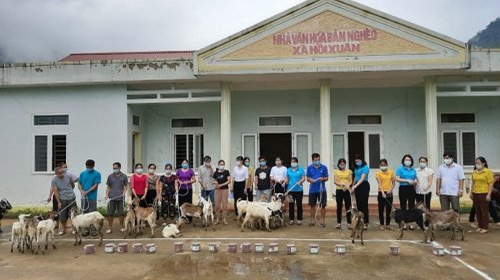 Thanh Hoa Women's Union gives breeding to the goat breeding service cooperative in Ngheo ward (Quan Hoa district)