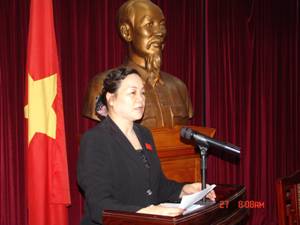 At the doorstep of the 12th National Assembly Election, in the morning of 27th March at the regular press meeting of the Culture and Information Ministry, Mme. Ha Thi Khiet President of the Vietnam Women’s Union, President of the National Committee for the Advancement of women has met with managers, chief editors of many newspapers, leaders of news agencies at the Central level and of Hanoi to talk about gender equality in leadership towards the 12th National Assembly Election.