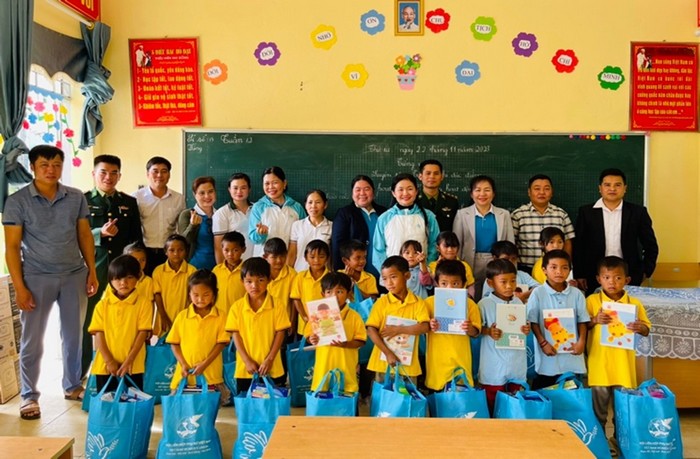 Delegation donates rice, necessities, textbooks… at the kindergarten and primary school in Hua Pang village, Nam Ban commune.
