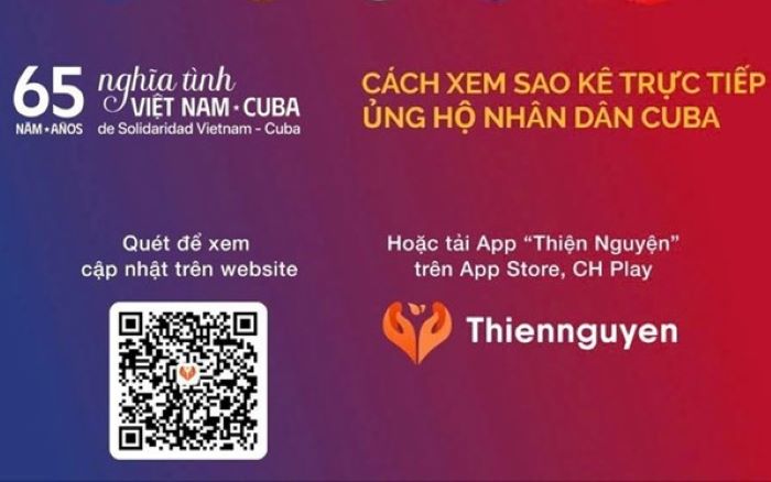 Nhân dân cả nước có thể truy cập vào địa chỉ https://thiennguyen.app/donate-target/1955184412459020288 hoặc tải App "Thiện nguyện" trên App Store, CH Play để cập nhập số tiền ủng hộ nhân dân Cuba. Đặc biệt, sao kê danh sách ủng hộ cũng được công khai tại đây.