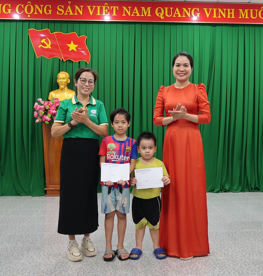 Dịp này, Hội LHPN phường Trảng Dài (Đồng Nai) cũng trao kinh phí hỗ trợ cho 2 em nhỏ ở Khu phố 3A trong chương trình Mẹ đỡ đầu.