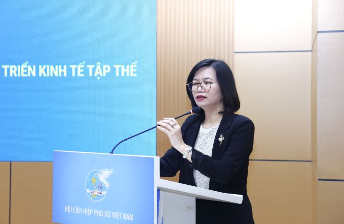 Bà Phạm Thị Hương Giang chia sẻ thêm, vai trò của kinh tế tập thể luôn nhận được sự quan tâm của Đảng và Nhà nước, do đó tại lễ kỷ niệm 95 năm thành lập Hội LHPN Việt Nam, Tổng Bí thư Tô Lâm đã đưa ra 10 định hướng, nhiệm vụ trọng tâm cho phong trào phụ nữ Việt Nam giai đoạn 2025 - 2035. Trong đó, tại nội dung số 4, Tổng Bí thư giao nhiệm vụ: "Thúc đẩy kinh tế phụ nữ: từ sinh kế bền vững đến doanh nghiệp do phụ nữ làm chủ. Mỗi tỉnh, thành phố phát triển tối thiểu một cụm dự án sinh kế - hợp tác xã do phụ nữ làm chủ; mỗi Xã hoặc cụm Xã có một sản phẩm OCOP của phụ nữ đạt chuẩn; mỗi năm, Hội bồi dưỡng một lực lượng nòng cốt phụ nữ khởi nghiệp, phụ nữ quản trị số. Kết nối tín dụng ưu đãi, tư vấn, chuyển giao công nghệ, tiêu chuẩn hóa chất lượng thương hiệu-bao bì-nhãn mác. Đưa "sản phẩm do phụ nữ làm chủ" vào chuỗi cung ứng xanh, công bằng".