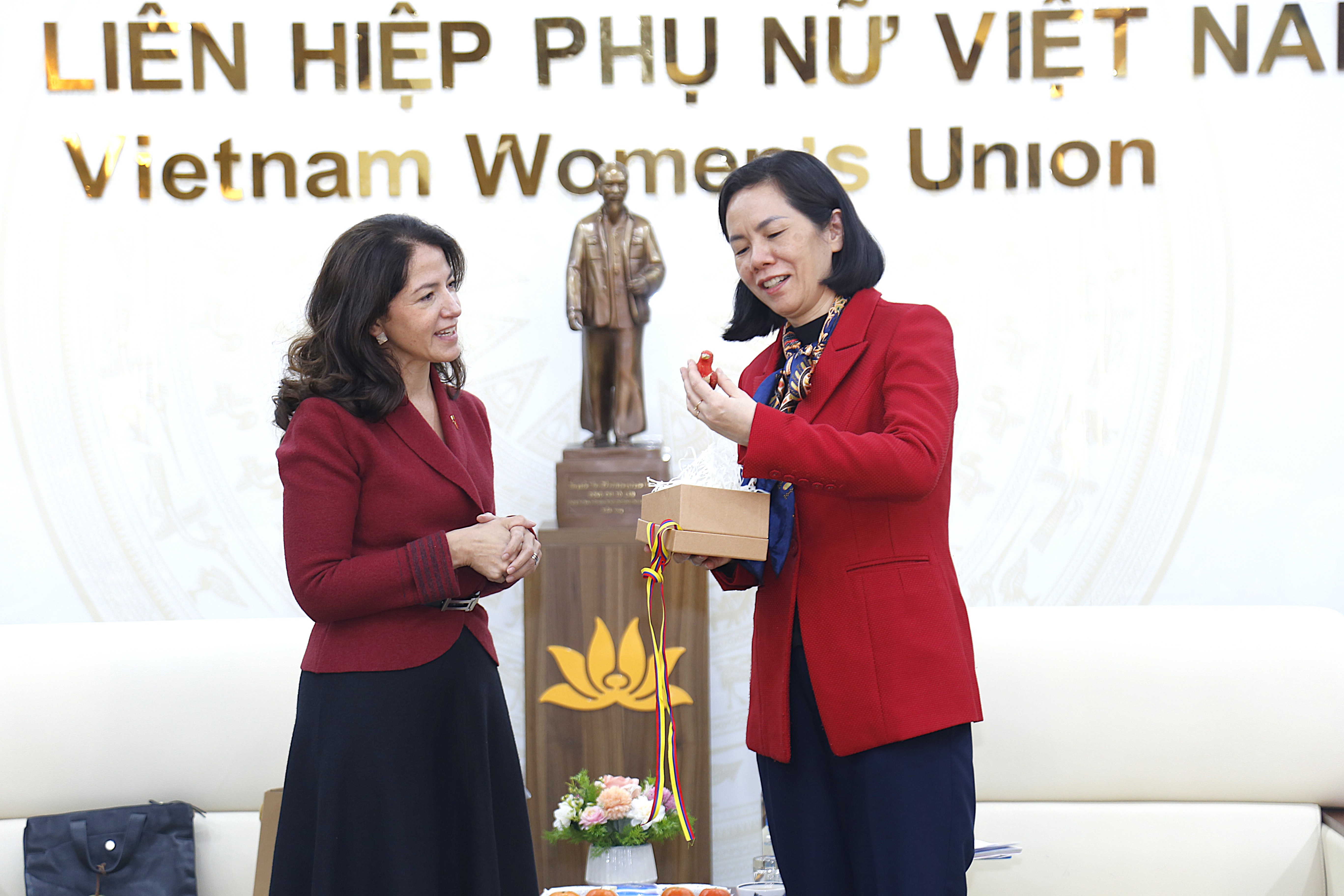 Phó Chủ tịch Hội LHPN Việt Nam Nguyễn Thị Minh Hương thông tin tới bà Đại sứ về cơ cấu, chức năng và nhiệm vụ của Hội LHPN Việt Nam