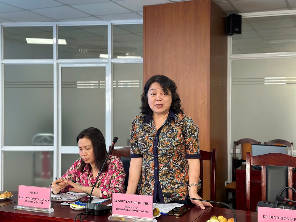 Phó Chủ tịch Liên đoàn Lao động TP Hà Nội Nguyễn Thị Thu Thủy cho ý kiến tại buổi tọa đàm.