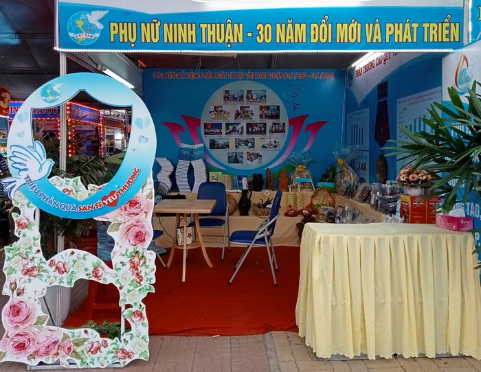 Tham gia trưng bày tại gian hàng triển lãm với chủ đề “Phụ nữ Ninh Thuận - 30 năm đổi mới và phát triển”, Hội LHPN tỉnh đã giới thiệu các sản phẩm đặc thù của các địa phương trong toàn tỉnh do hội viên, phụ nữ chế biến, sản xuất như: Măng Tây xanh, trà Măng Tây do Hợp tác xã Châu Rế sản xuất; Gốm bầu trúc, thổ cẩm Mỹ nghiệp; đồ mỹ nghệ; Bắp nữ hoàng đỏ, nấm bào ngư xám…  Các sản phẩm bước đầu đã giúp phát triển kinh tế gia đình của nhiều hội viên phụ nữ, góp phần phát triển kinh tế - xã hội tại địa phương.