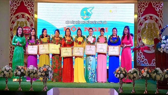 Chị Đông mặc áo dài xanh (thứ 2 phải ảnh sang) được nhận Giấy khen UBND huyện Phù Cát Trước khi gắn bó với nghề nuôi chồn hương, chị Đông nuôi heo, nuôi bò. Song nhận thấy nuôi các loại này tốn nhiều công chăm sóc nhưng không mang lại hiệu quả cao, nên gần cuối năm 2020 chị bàn với anh quyết định chuyển sang nuôi chồn hương.