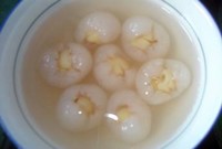 - Xếp nhãn vào bát, đổ nước đường vào (có thể cho nhãn đã lồng htạ sen vào nồi nước đường đun sôi, tắt bếp).
