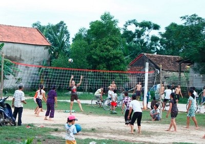 Chiều đến, sau một ngày quần quật trên ruộng, các chị em của huyện Lệ Thủy (Quảng Bình) lại rủ nhau đến sân nhà văn hóa thôn, xã, thị trấn cùng chơi bóng chuyền, chuyên nghiệp và đam mê như vận động viên thực thụ.