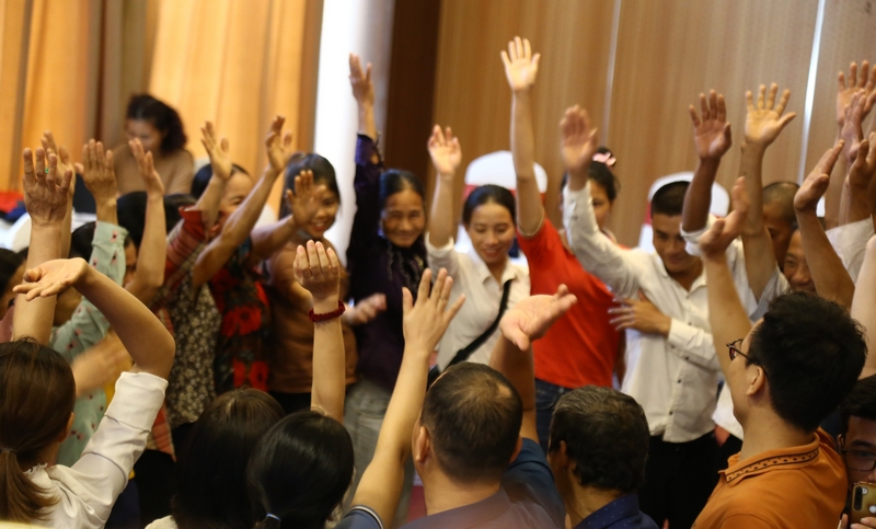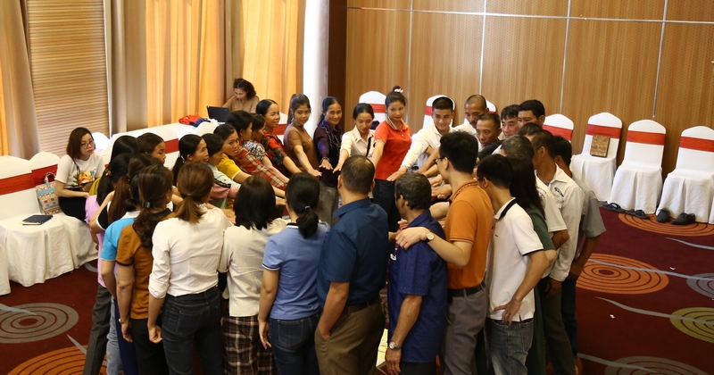 Các cặp vợ chồng từng xảy ra bạo lực cùng sinh hoạt trong một buổi tập huấn do Hagar tổ chức