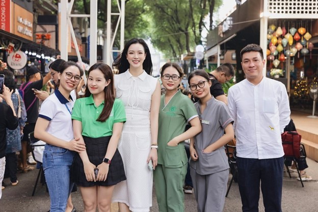 CEO BON Spa chị Trang Phương cùng anh Bùi Thế Hiển - Phó Giám đốc Đối ngoại Hải Hưng Group và đội ngũ BON Spa tại sự kiện