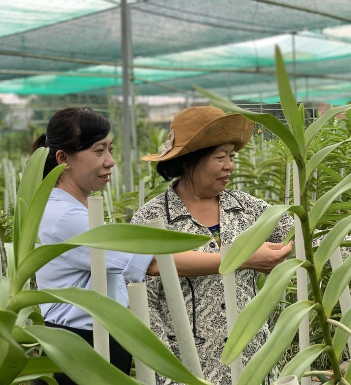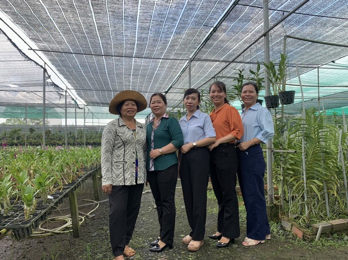 Lãnh đạo Đảng ủy, UBND, Hội LHPN xã đến thăm vườn lan của chị Loan Vườn lan nằm ngay cạnh nhà chị Loan với diện tích khoảng 4.000m2, dù hoa chưa nhiều nhưng với nhiều loại khác nhau, vườn lan của chị đã tạo nên một khung cảnh vô cùng thơ mộng, những cánh hoa lan màu sắc rực rỡ khoe sắc dưới ánh nắng mặt trời. Chị giới thiệu từng loại lan, cách trồng và chăm sóc và cho biết, chị hiện đang trồng nhiều loại lan như panda, denro, catlaya, vũ nữ...