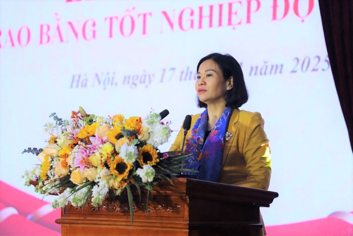 Phát biểu tại buổi lễ, đồng chí Nguyễn Thị Tuyến, Ủy viên Trung ương Đảng, Bí thư Đảng đoàn, Chủ tịch Hội Liên hiệp Phụ nữ Việt Nam nhấn mạnh vai trò của Học viện Phụ nữ Việt Nam trong việc đào tạo nguồn nhân lực chất lượng cao, đặc biệt là cán bộ nữ cho đất nước. Chủ tịch Hội cũng khẳng định sự quyết tâm của Hội LHPN Việt Nam trong việc đồng hành cùng Học viện để nâng cao chất lượng đào tạo và phát huy vai trò của phụ nữ trong kỷ nguyên mới. Đồng thời gửi lời chúc mừng nồng nhiệt đến các tân cử nhân, tân thạc sĩ: “Chúc các tân cử nhân, các tân thạc sĩ sẽ mang những hành trang đã tích lũy được tại Học viện Phụ nữ Việt Nam để tự tin bước vào một tương lai tươi sáng. Các em là thế hệ tân cử nhân, tân thạc sĩ đầu tiên của Học viện đầu tiên bước vào kỷ nguyên mới, kỷ nguyên vươn mình của dân tộc - các em hãy tự hào được đào tạo tại Học viện Phụ nữ Việt Nam và không ngừng phấn đấu để góp phần xây dựng xã hội phát triển và bình đẳng hơn”.