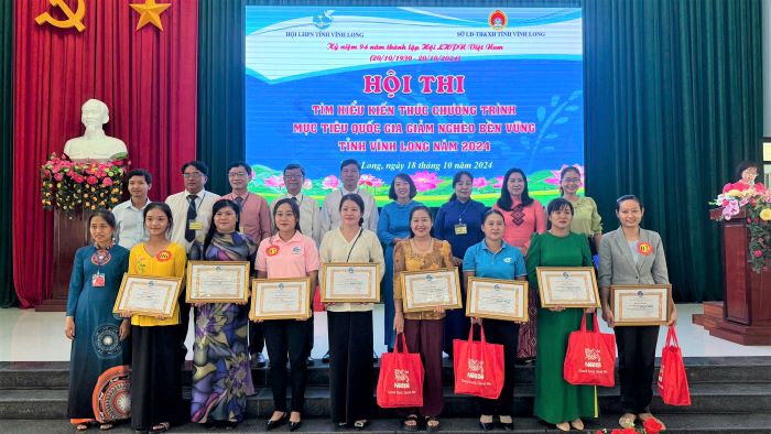 Hội LHPN tỉnh Vĩnh Long phối hợp với Sở LĐTB&XH tỉnh tổ chức Hội thi tìm hiểu kiến thức Chương trình mục tiêu quốc gia giảm nghèo bền vững cấp tỉnh năm 2024, có 8 đội dự thi, với 64 thí sinh, thu hút trên 200 đại biểu, cổ động viên tham gia cổ vũ.