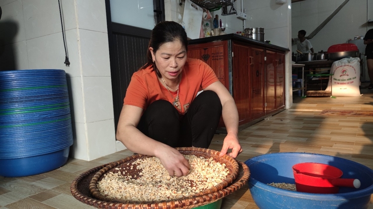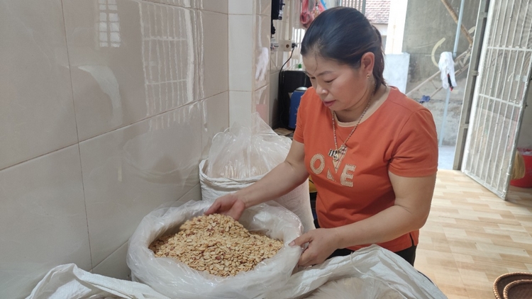 Lạc để làm kẹo lạc ngon, chị Hồng phải chọn mua lạc loại A, hạt to đều, chắc mẩy