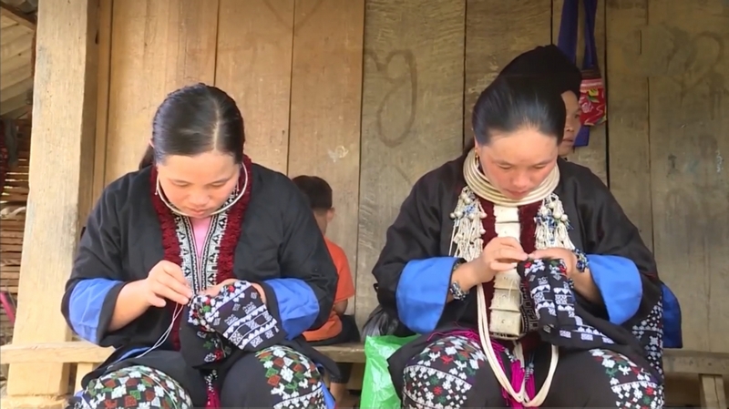 Chị em phụ nữ tranh thủ thêu trang phục