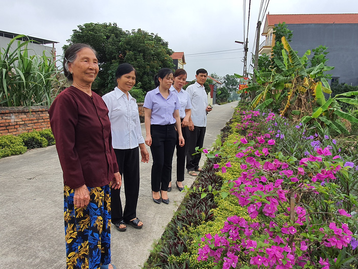 Hay như phong trào xây dựng đường hoa phụ nữ đã lan tỏa tới 100% các gia đình hội viên trong thôn. Hàng ngày, mỗi hội viên phụ nữ và người dân vẫn thường duy trì nền nếp dọn vệ sinh đường làng, ngõ xóm gắn với việc chăm sóc cây hoa.